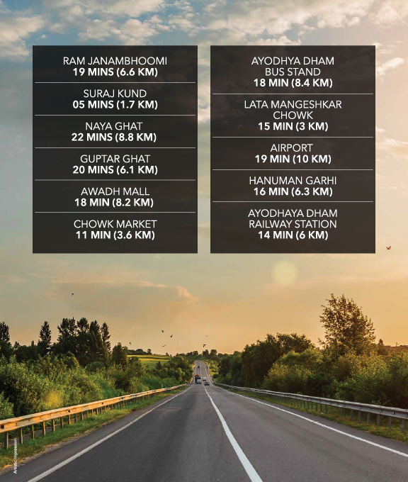 Just 1.8 km from Ram Mandir – This prime location places residents within easy reach of one of the most revered spiritual landmarks in India, offering both a serene living environment and excellent connectivity to other parts of Ayodhya and beyond.